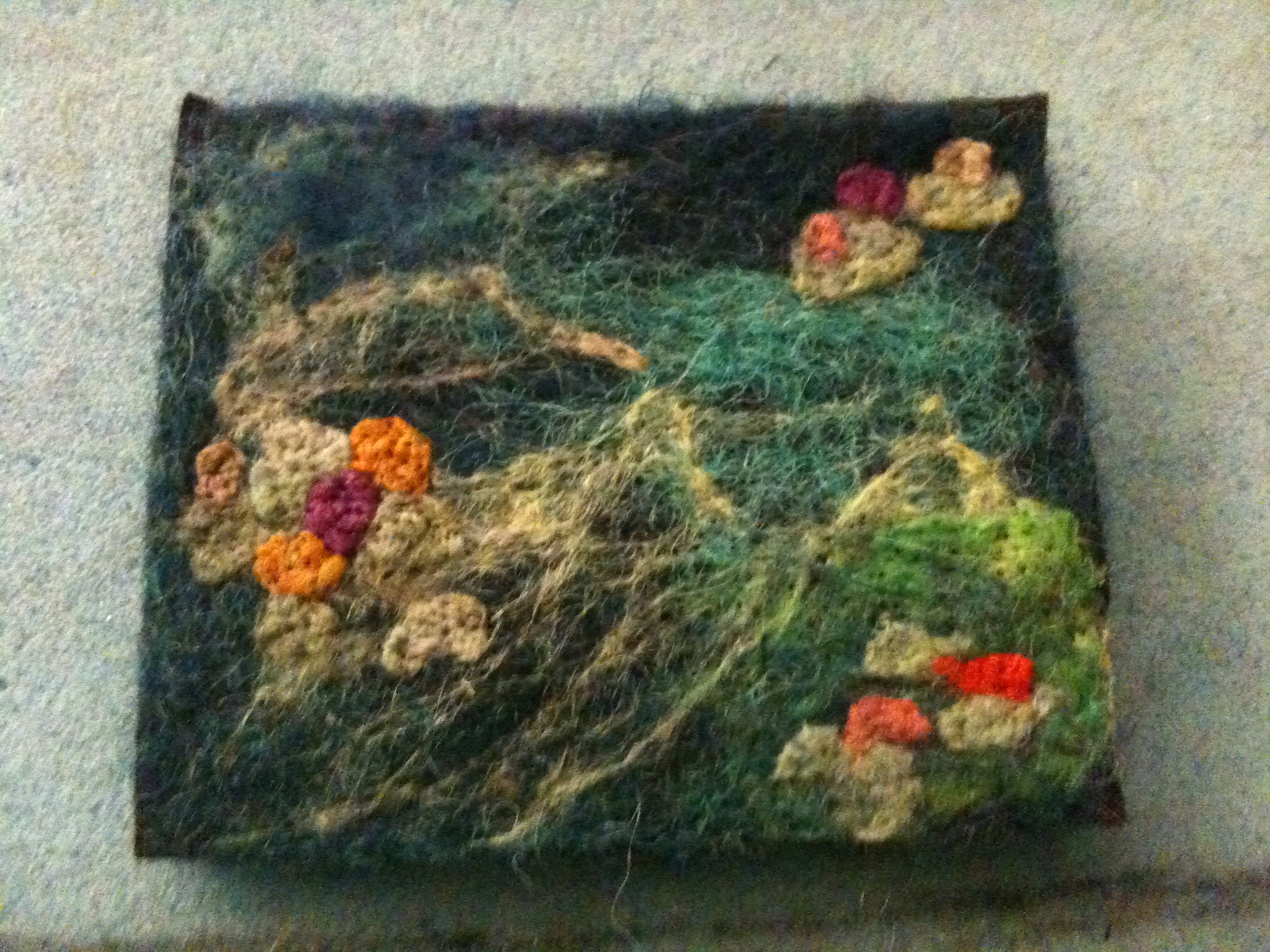 The cotton worked quite well as a base. Thin enough to pierce, but thick enough to avoid having to use loads of felt
