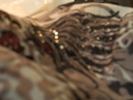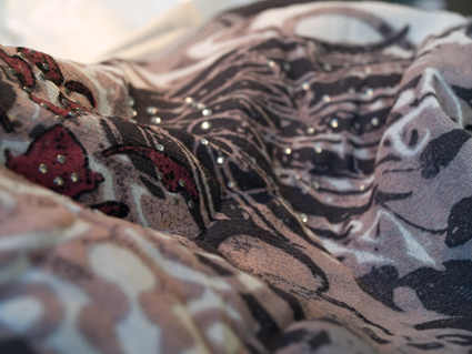 I really like the fluidity of this – the way that the print on the fabric suggests flowing water down hills and the light catching on it. But not right for felting.