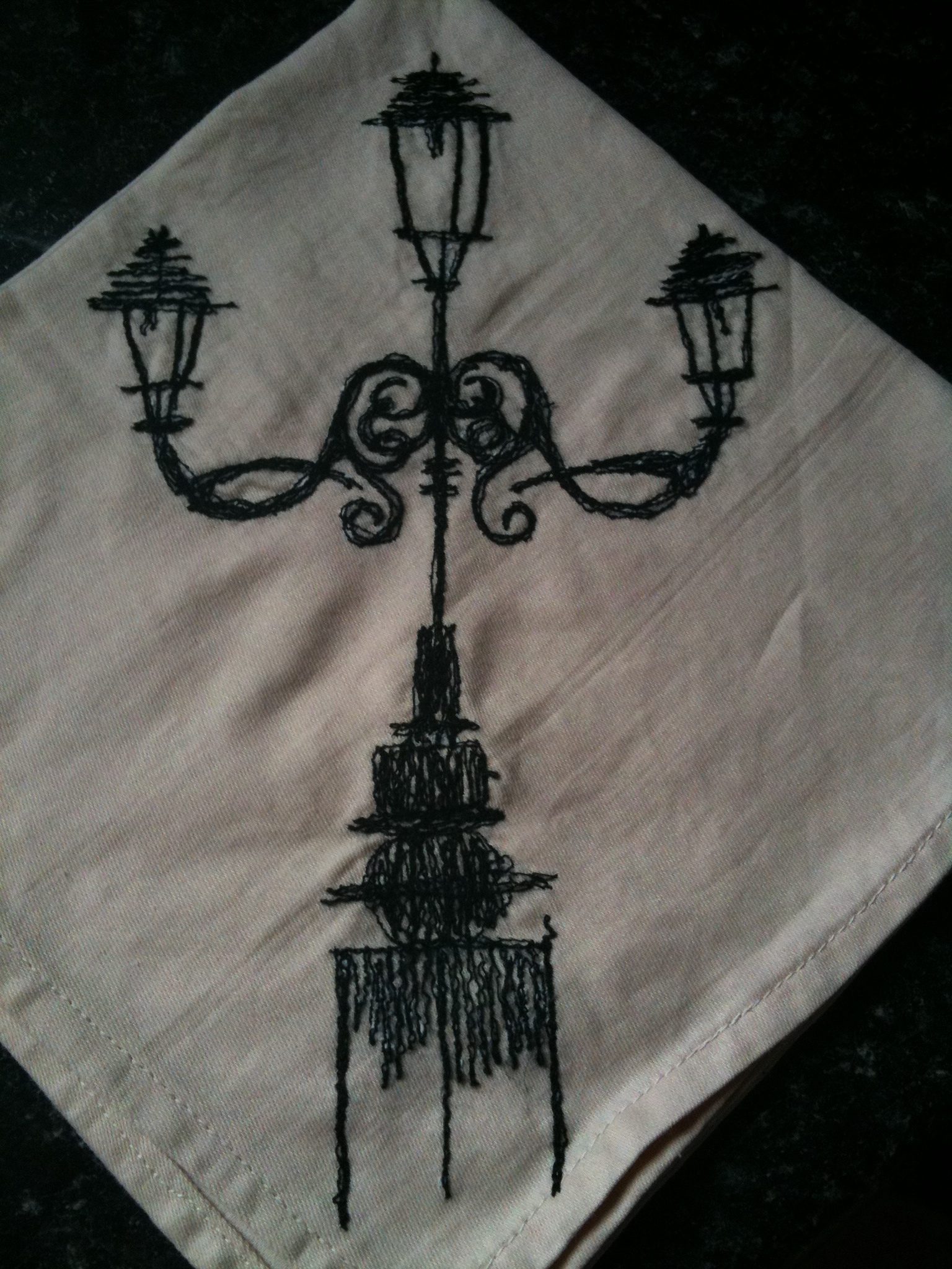 Venetian lampposts April 3, 2011 · by Amelia Wilson Art · in Adventures. · Some machine embroidery. I made these 6 napkins – of a Venetian Lampost – for my parents for Christmas. I really like their sketchy quality and think this is something I could take further. Merging with felt and other materials or as markmaking. Share this:Share Share on Facebook (Opens in new window) Facebook Share on Tumblr (Opens in new window) Tumblr Email a link to a friend (Opens in new window) Email Share on X (Opens in new window) X Share on LinkedIn (Opens in new window) LinkedIn Share on Pinterest (Opens in new window) Pinterest Like Loading... Related