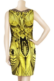 Found this really interesting dress for sale. It was a citrus lemon/lime colour satin shift dress with an overlay or net that was heavily machine emboidered with a geometric pattern/image.