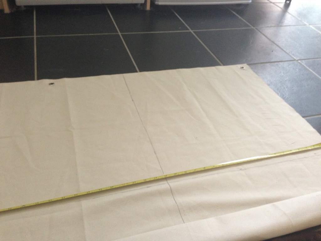 Because I don’t want to paint the garage wall (it was hell to paint white in the first place and the texture is poor for an even surface) I chose to paint on a large square of canvas fabric.