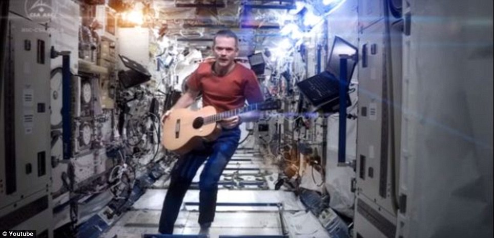 Commander Chris Hadfield records a cover version of David Bowie’s 1969 Space Oddity as a farewell message to Twitter fans. Hadfield has been aboard the International Space Station since December and is due to return to Earth on Tuesday. He has posted stunning photos of space during his five-month stint, and recorded videos showing how astronauts brush their teeth and how to throw up in space ©DailyMail