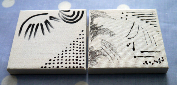P1010478Asm Published May 19, 2013 at 567 × 274 in Making Day – Sat 18th May ← Previous 10. Mini primed canvases with marker pen (left) and pencil and ink (right)