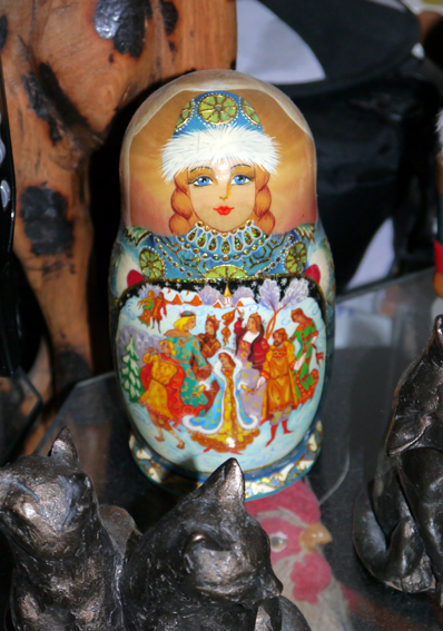 P1010788-1sm Published July 21, 2013 at 398 × 567 in Off the wall ← Previous Next → I love this matrushka doll I bought in St Petersburg. It features Russian Fairytales and has my fave colour combo on the outside doll.