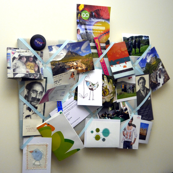 P1010858-1sm Published July 21, 2013 at 567 × 567 in Off the wall ← Previous Next → My pinboard gets added to over time. When I look at this I see teals, greens, reds and golds.