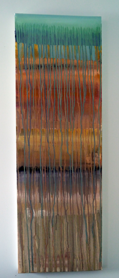 This is a painting I did last year for submission to Fabric of the Land called ‘Who Do You Think You Are?’. It wasn’t accepted. When it came back from OCA submission, I hung it on the wall because I love the colours so much. There is always some new colour combination to find in here.