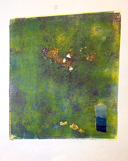 photo 13 Published November 1, 2013 at 449 × 567 in Sherwood Printmaking Day 27 Oct ← Previous Next → Duck egg, yellow and grey layers from 3 card plates with additional tissue. This paper was very wet and the surface kept breaking up.