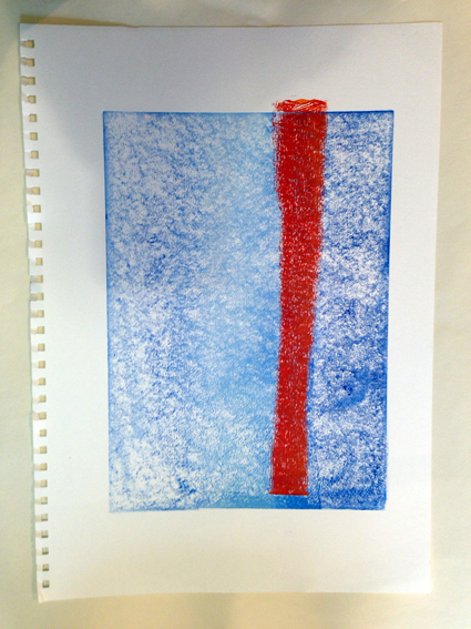 16 Published November 10, 2013 at 425 × 567 in Monoprinting experiments ← Previous Next → final pass of base colour with offset stripe.
